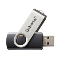 Intenso Basic Line. Capacità: 16 GB, Interfaccia dispositivo: USB tipo A, Versione USB: 2.0, Velocità di lettura: 28 MB/s, Velocità di scrittura: 6,5 MB/s. Fattore di forma: Girevole. Peso: 15 g. Colore del prodotto: Nero, Argento